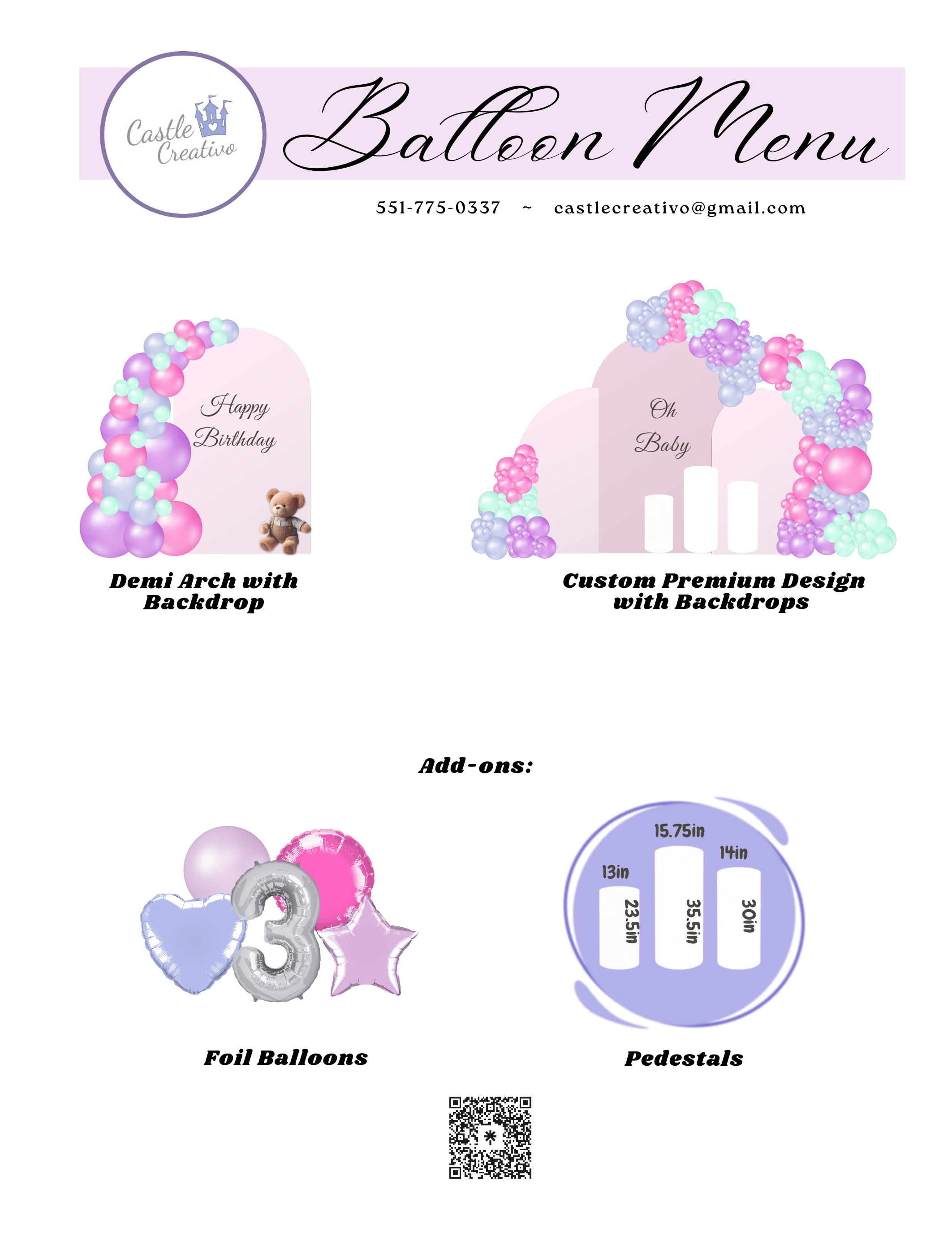 Our Balloon Menu is the perfect starting point to begin crafting the event of your dreams. Together, we’ll collaborate on every detail to ensure your celebration is uniquely tailored to your style and vision.